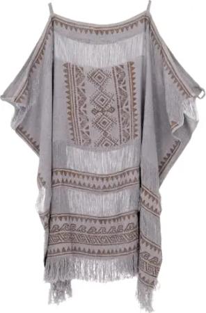 GURU SHOP Boho Poncho, Leichtes Oversize Boho Cape - Taubengrau, Damen, Baumwolle
