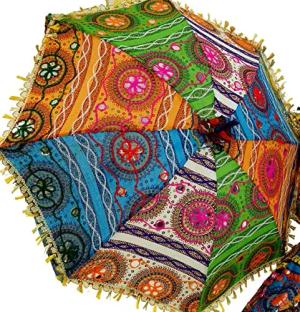 GURU SHOP Bunter Baumwoll-Sonnenschirm aus Indien, Größe: Klein(61x66 Cm), Zier- & Sonnenschirme