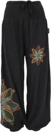 GURU SHOP Weite Pluderhose mit Breitem Bund, Mandalastickerei - Schwarz/blau, Damen, Baumwolle, Size:L/XL