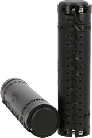 Echtes Leder - Sonny C. Leder Lenkergriff Fahrradgriff Ledergriff Schwarz Leder Metallring Schwarz
