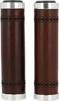 Echtes Leder - Sonny C. Leder Lenkergriff Fahrradgriff Ledergriff Braun Leder Metallring Silber matt
