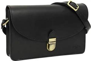 Leder Umhängetasche Damen Wiebke – Echtleder Handtasche Klein Schwarz Vintage – Crossbody Bag Damen Leder mit Goldbeschlägen für Alltag & Events