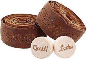 Leder Lenkerband Fausto C. – 200cm Griffband selbstklebend (2er Set) – Gravelbike- & Rennrad Lenkerband Leder inkl. Korkstopfen für sicheren Halt