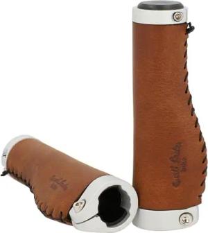 Echtes Leder - Sonny C. Lenkergriff Fahrradgriff Ledergriff Braun Leder Metallring Silber glatt