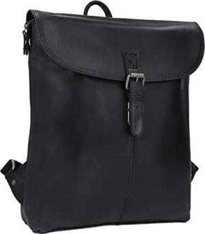 Leder Rucksack Kieran - Laptop Tasche für Damen und Herren, Echtes Ziegenleder Mit Schnappverschluss und Geräumigem Innenraum, 11L Schwarz
