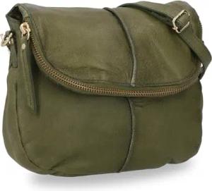 Leder Umhängetasche – Iselin in Grün Khaki Leder Tasche aus Rindsleder im 80s Revival-Design mit Magnet- und Reißverschluss, verstellbarer Schultergurt