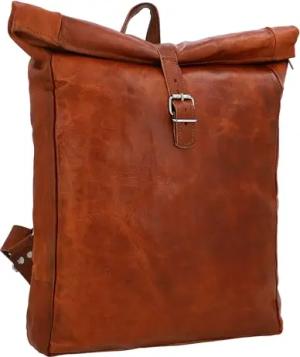Leder Rucksack - Joy Rolltop Tagesrucksack in Braun Leder für Damen & Herren, Kurierrucksack mit Laptopfach 15", Vintage City- & Outdoorrucksack