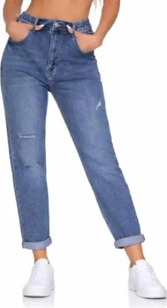 Hailys Damen High Waist Mom Jeans Mi44rell Destroyed Jeanshose knöchellang FUR-PO2405007 MBlue L