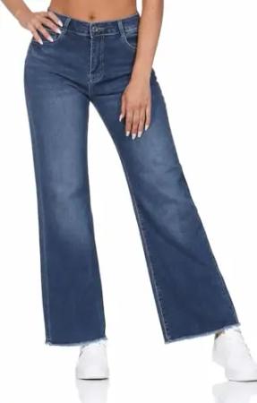 Hailys Damen Wide Leg Jeans Hose 7/8 Ju44lina Jeanshose mit weitem Bein KAX-PO2303049-A Dblue XXL