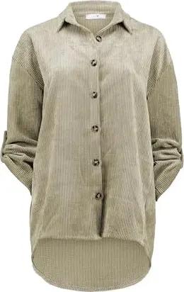 Hailys Damen Cordbluse Langarm Oversize mit Knopfleiste, Farben:Beige, Größe:M
