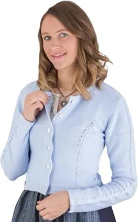 Strickjacke Lugano blau, Lange Trachtenweste für Damen, Festliche Trachtenjacke zum Dirndl oder Rock (DE/NL/SE/PL, Numerisch, 48, Regular, Regular, blau)
