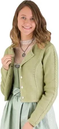 Strickjacke Lugano grün, Lange Trachtenweste für Damen, Festliche Trachtenjacke zum Dirndl oder Rock (DE/NL/SE/PL, Numerisch, 40, Regular, Regular, grün)