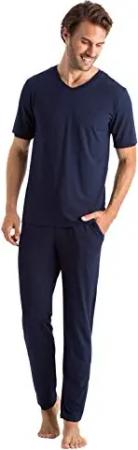 Herren Lässiges Kurzarm-Shirt mit V-Ausschnitt Pyjamaoberteil, tiefes Marineblau, Mittel