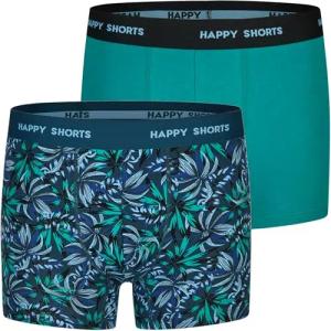 2 Jersey Trunk Herren Boxershorts Palmeblätter Blau Grün, Farbe:Palmenblätter, Grösse:XL