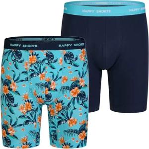 2 Jersey Trunk Lang Herren Boxershort Blumen Print Navy, Farbe:Blumen Print - Navy, Grösse:XL