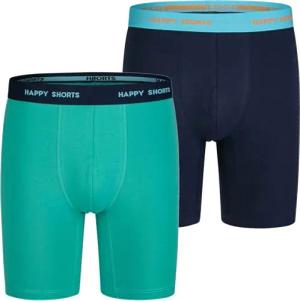 2 Jersey Trunk Lang Herren Boxershort Pant Blau Grün, Farbe:Solid Navy - Green, Grösse:XL