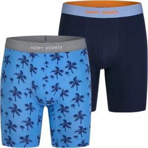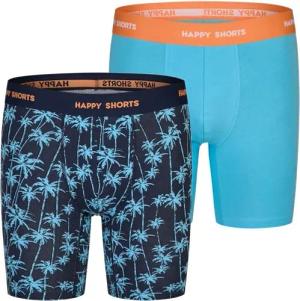 2 Jersey Trunk Lang Herren Boxershort Pant Palmen Blau, Farbe:Palme, Grösse:M