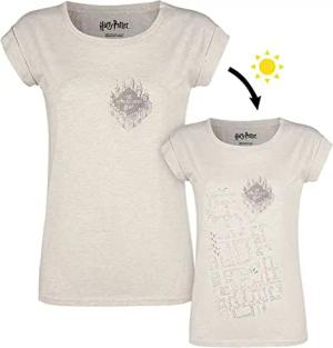 Frauen T-Shirt Karte des Rumtreibers mit UV-Druck - magischer Farbwechsel bei Sonnenlicht - Creme meliert mit Frontdruck und Rundhals, exklusiv bei EMP