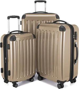 Alex - 3er Kofferset - Handgepäckskoffer 55 cm, mittelgroßer Koffer 65 cm + großer Reisekoffer 75 cm, Hartschale ABS+PC, TSA, Champagner