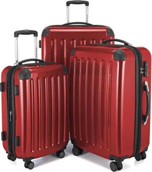 Alex - 3er Kofferset - Handgepäckskoffer 55 cm, mittelgroßer Koffer 65 cm + großer Reisekoffer 75 cm, Hartschale ABS+PC, TSA, Rot