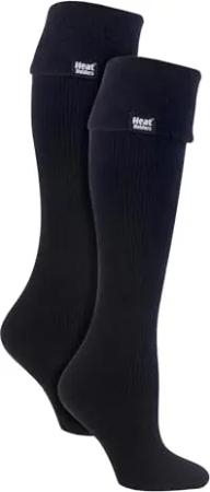 2er Pack Damen Kniestrümpfe Winter Warm Wellington Stiefelsocken Outdoor (37-42, Schwarz)
