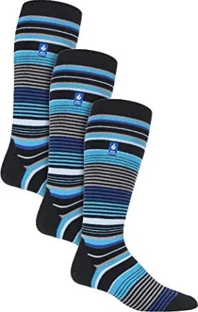 3er Pack Herren Gestreift Muster Skisocken Thermo Kniehoch Socken mit Gepolstert (39-45, Schwarzer Streifen)