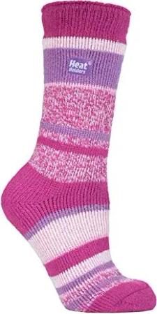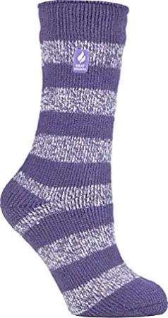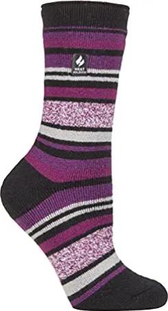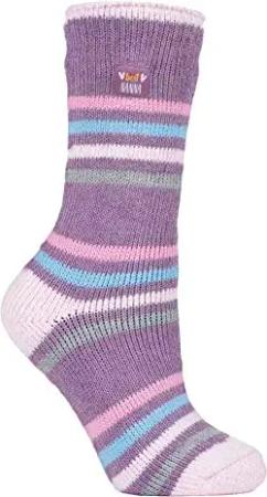 Lite - Damen Dünn Bunt Muster Motiv Thermosocken für Geschenk | Socken für Winter (37-40, Lila Streifen (Jasmin))