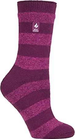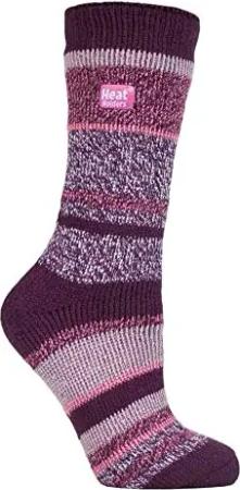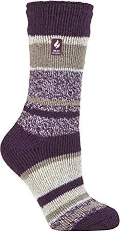 Damen Extra Warm Innen Flauschig Thermosocken für Geschenk | Socken für Winter (DE/NL/SE/PL, Numerisch, 37, 42, Regular, Regular, Mulberry Lila/Weiß (Chunky Stripe))