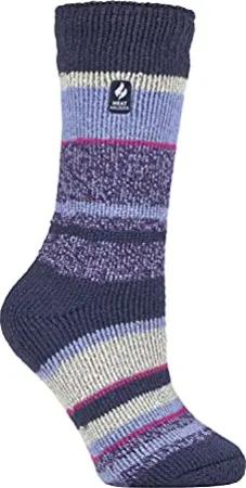 Damen Kniehoch Extra Warm Dicke Gestreift Thermo Skisocken (37-42, Indigo-Streifen)