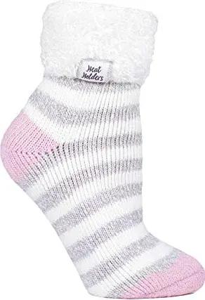 Damen Fleece Flauschig Gestreift Thermo Kuschelsocken (37/42, Cream/Light Grey (S TOT))