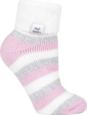 Damen Fleece Flauschig Gestreift Thermo Kuschelsocken (37/42, Cream/Light Pink (S Rib))