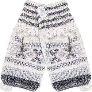 Damen Thermo Fleece Norwegermuster Fingerlose Fäustlinge mit Daumen (One Size, Cream (Stockholm))