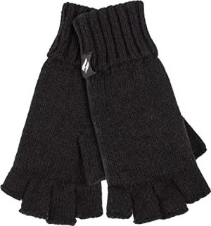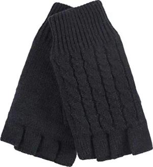 Damen Thermo Winter Strick Fingerlos Handschuhe mit Plush Fleece Gefüttert (One Size, Schwarz)