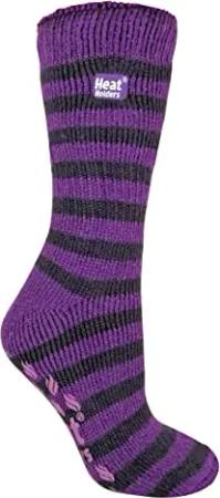 Damen Warm Stoppersocken Rutschfest Antirutschsohle Kuschelig Thermosocken Antirutsch für Winter (37-42, Lila stripe)