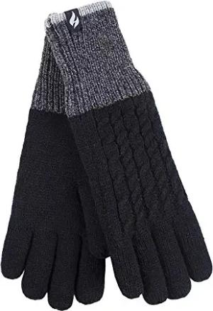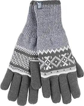 Damen Winter Fleece Strick Elegant Norwegermuster Handschuhe (M-L, Black)