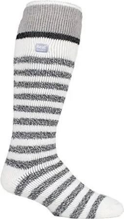 Herren Bunt Muster Warm Dicke Gestreift Extra Lang Thermo Skisocken mit Gepolstert (39-45, Creme-Streifen)