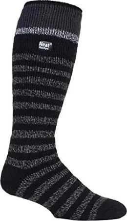Herren Bunt Muster Warm Dicke Gestreift Extra Lang Thermo Skisocken mit Gepolstert (39-45, Schwarzer Streifen)