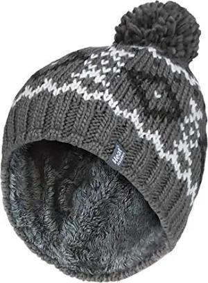 Herren Winter Warm Fleece Mütze/Beanie mit Bommel (One Size, Grey/White)