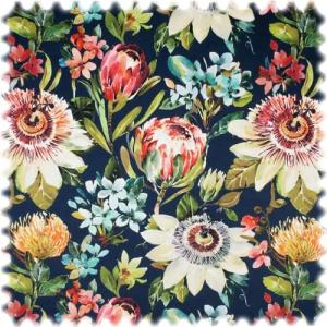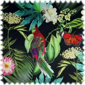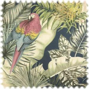 Leinenoptik Möbelstoff Safari Papagei Dunkelblau mit Rückenkaschierung