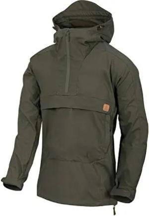 Taktische Feldjacke Anorak Woodsman - Bushcraft, Outdoor - mit Kapuze, viele Taschen - Winddichte Outdoorjacke - Schwarz/Taiga Grün - Größe L