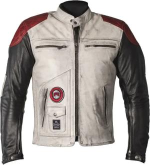 Tracker Motorrad Lederjacke, schwarz-weiss-rot, Größe 2XL für Männer