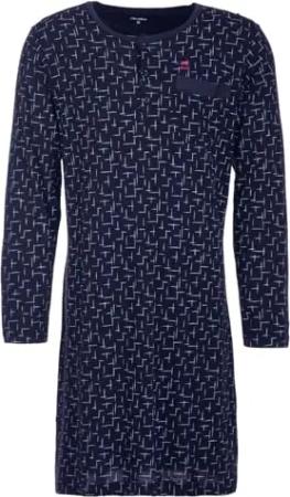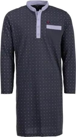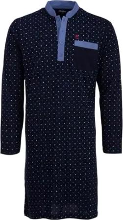 Nachthemd Herren Langarm Punkte Brusttasche Schlafshirt Größe M-3XL, Farbe:Navy, Größe:M