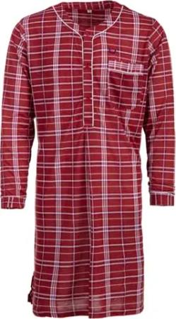 Herren Nachthemd Langarm Tartan Muster Brusttasche Knopfleiste Größe M-3XL Baumwollmix, Farbe:rot, Größe:L