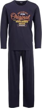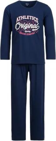 Herren Pyjama Langarm Athletics Original 2 teiliges Set M-2XL Baumwolle, Farbe:Navy, Größe:M