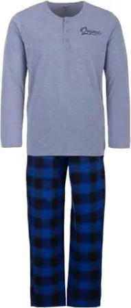 Herren Pyjama Langarm Modell 2er Set Schlafanzug kariert Größe M-3XL, Farbe:Blau, Größe:XL