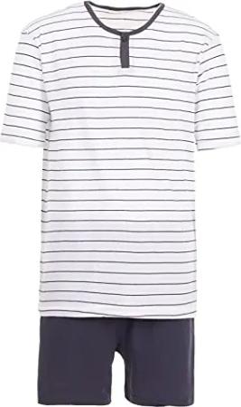 Herren Shorty Pyjama Set Kurzarm Gestreift Knopf M-5XL Schlafanzug, Farbe:weiß, Größe:L