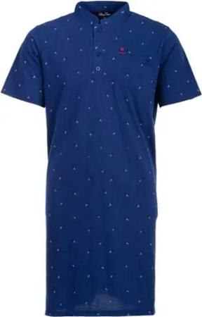 Nachthemd Herren Langarm Lilie Allover Muster Brusttasche Knopfleiste M-2XL, Farbe:Navy, Größe:XL
