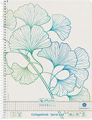 Spiralblock GREENline A4, Lineatur 28, 70 Blatt, Motiv Ginkgo, 5 Stück