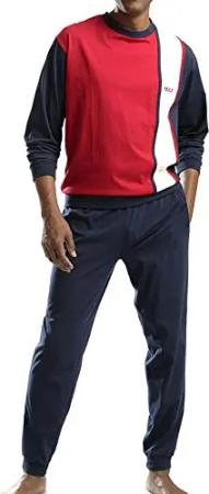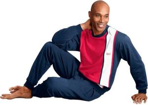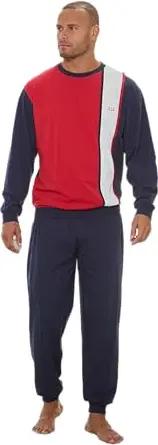 Langer Herren Schlafanzug (56/58, Marine-rot-weiß)