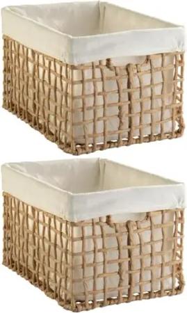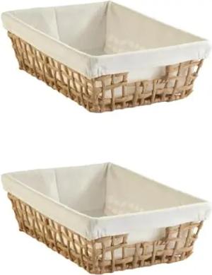 Aufbewahrungskörbe 2er Set - 30 x 20 cm - Beige - Braun - Draht - Papier - mit Stoffeinsatz